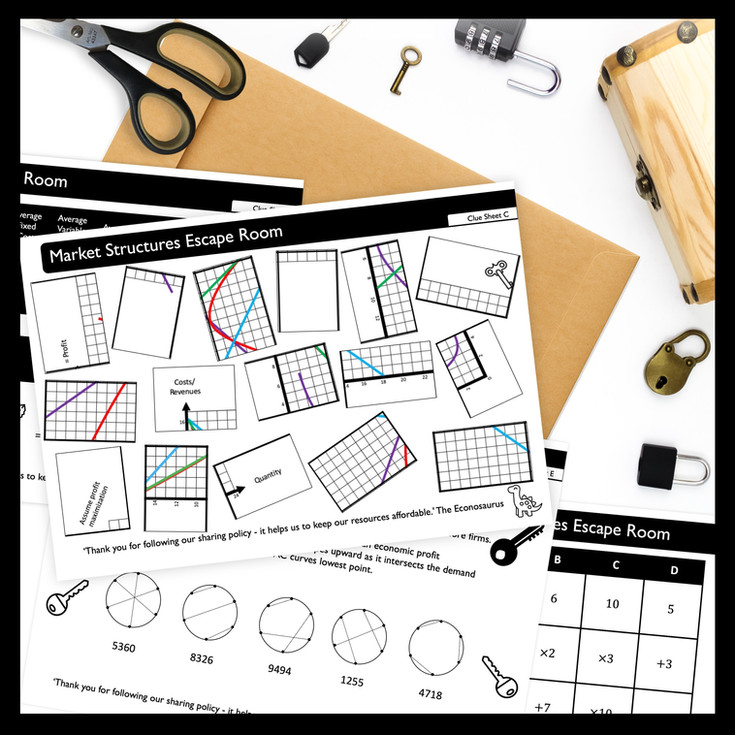 As with the Measures Escape, I’ve also updated the Market Structures Escape Room activity. This includes the addition of a ‘Streamlined’ version where all the clues for each lock are grouped on a single page.